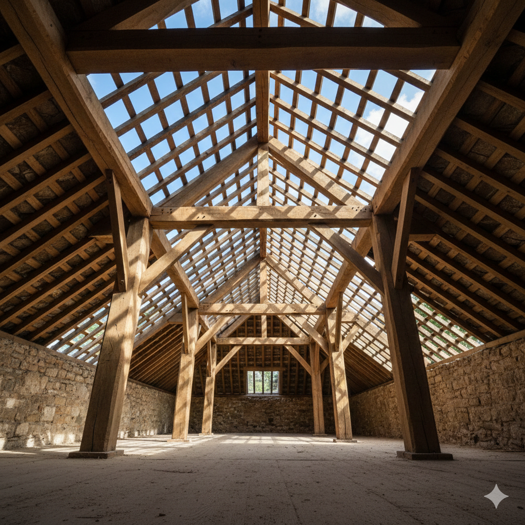 La charpente est l’ossature de votre toiture et garantit sa solidité. Nous intervenons pour la création, la rénovation ou le renforcement de charpentes, avec un travail précis et durable.